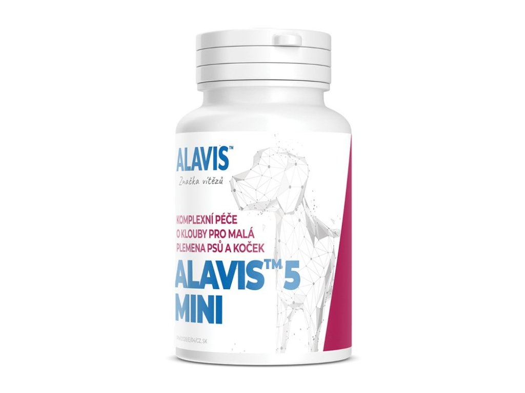 Komplexná kĺbová výživa pre psy malých plemien a mačky ALAVIS™ 5 MINI vyživuje kĺbové chrupavky, podporuje premazávacie vlastnosti kĺbovej tekutiny, napomáha pri pohybových problémoch u psov a mačiek.