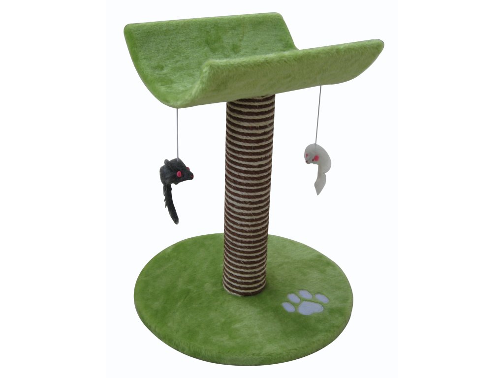 Doprajte svojej mačke doplnok, ktorým je škrabadlo firmy Cat-Gato. Škrabadlo Merry 53 cm je jednoduché, má jeden stĺpik omotaný sisalovým povrázkom, je zelené a hodí sa do malého interiéru. Ideálne pre mačky malých a strených plemien. Vďaka okrúhlemu, hebkému podstavcu je nielen atraktívne a pohodlné pre mačací odpočinok ale aj stabilné. Originálny zelený vzor je úžasným doplnkom do spoločného domova. Zavesené hračky zaručene upútajú pozornosť vašej mačky a vyzvú k aktívnej hre, ktorá využije ich prebytočnú energiu správnym smerom. Horná časť je prevesená odpočívadlo v plyšovom materiáli.