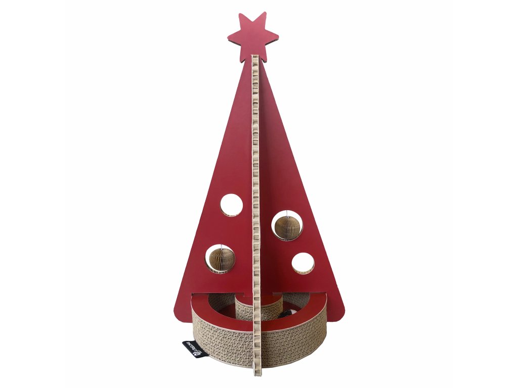 Škrabadlo vianočný strom, červené. Toto vianočné škrabadlo v tvare vianočného stromčeka zaručene prinúti vašu mačku k hre. Ideálna hračka pre niekoľko hodín zábavy a pohybu počas sviatočných dní. Vedeli ste, že hra s vašou mačkou je veľmi dôležitá? Spoločné hranie posilňuje puto s vašou mačkou. Vianočný stromček je ozdobený bankami z vlnitej lepenky. Vhodné aj na odpočinok mačky. Upozornenie: Žiadne hračky pre mačky z lepenky nie sú nezničiteľné. Dbajte na to, aby vaša mačka nezjedla žiadnu časť hračky, mohlo by to mať nepríjemné následky. Nie je určené deťom. Len pre mačky. Vhodné pre mačiatka aj dospelé mačky. Rozmery: 33 cm x 23 cm x 23 cm.
