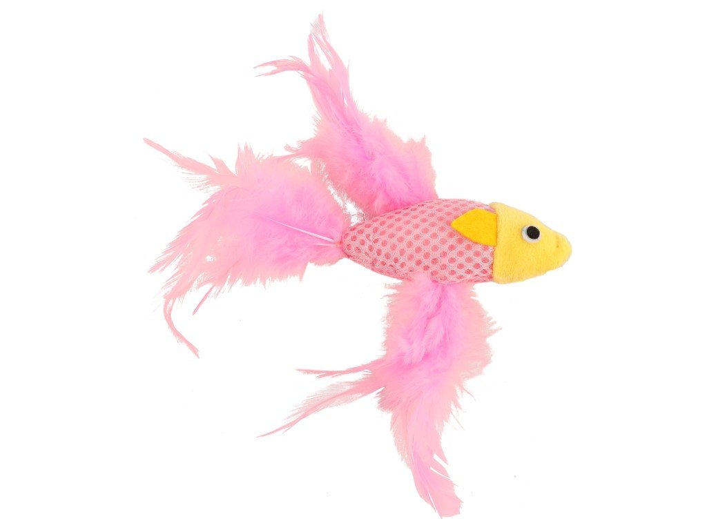 Hračka pre mačky - ryba s ružovým perím.