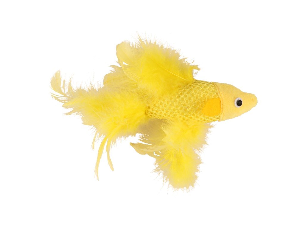 Hračka pre mačky - ryba so žltým perím.