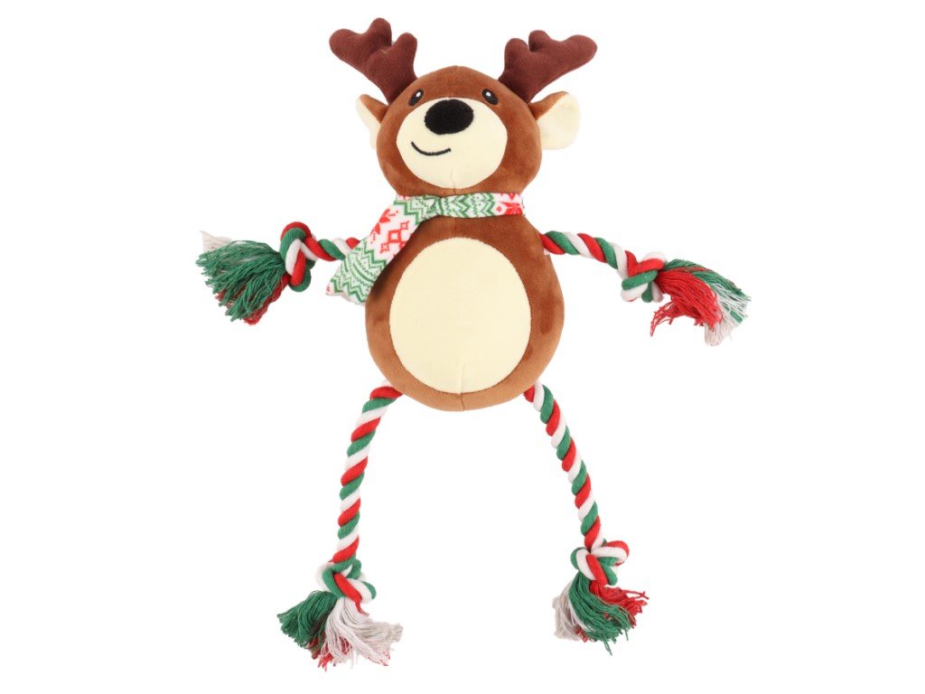 Huhubamboo plyšová hračka pre psov sob s lanom 32 cm