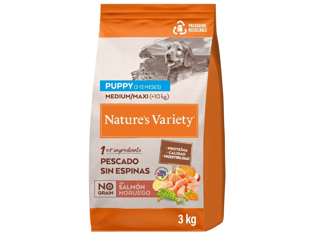 Kompletné krmivo ideálne pre šteňatá od 2 do 12 mesiacov, ktoré preferujú chuť rybieho mäsa. Hlavnou zložkou tohto krmiva je vykostený losos. Toto bezobilné chutné krmivo je doplnené starostlivo vybraným ovocím a zeleninou, ktoré slúžia ako zdroj vlákniny, minerálnych látok a antioxidantov. Ďalej obsahuje zemiaky, cícer a hrášok, čo sú prírodné zdroje sacharidov, ktoré dodajú vášmu šteniatku potrebnú energiu a slúžia ako výborná alternatíva cereálií. Vďaka svojmu zloženiu podporuje silné zuby a kosti, zdravý vývoj mozgu a zraku aj imunitný systém. Neobsahuje žiadne umelé farbivá, konzervačné látky ani príchute. Napriek tomu je veľmi lákavé. Všetky suroviny použité v krmive sú od preverených dodávateľov.