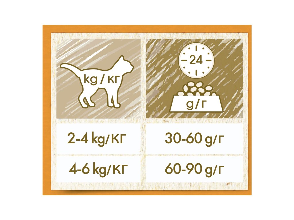 Tieto pokyny sú iba orientačné. Individuálne požiadavky zvieraťa sa môžu líšiť napríklad podľa veku, telesného stavu a úrovne aktivity.