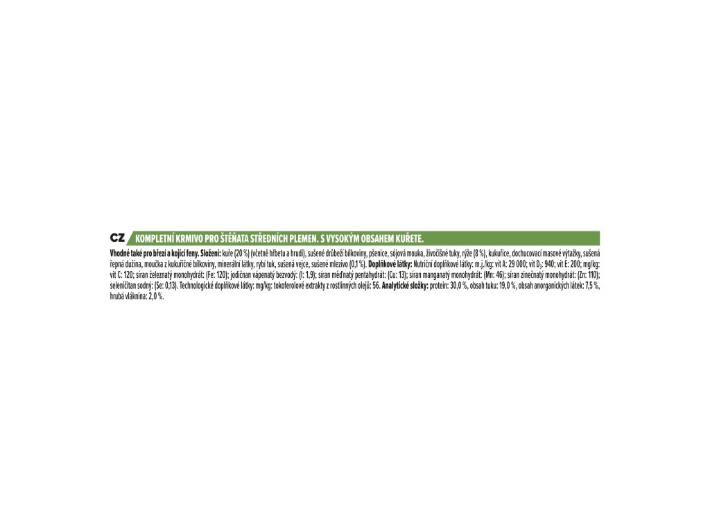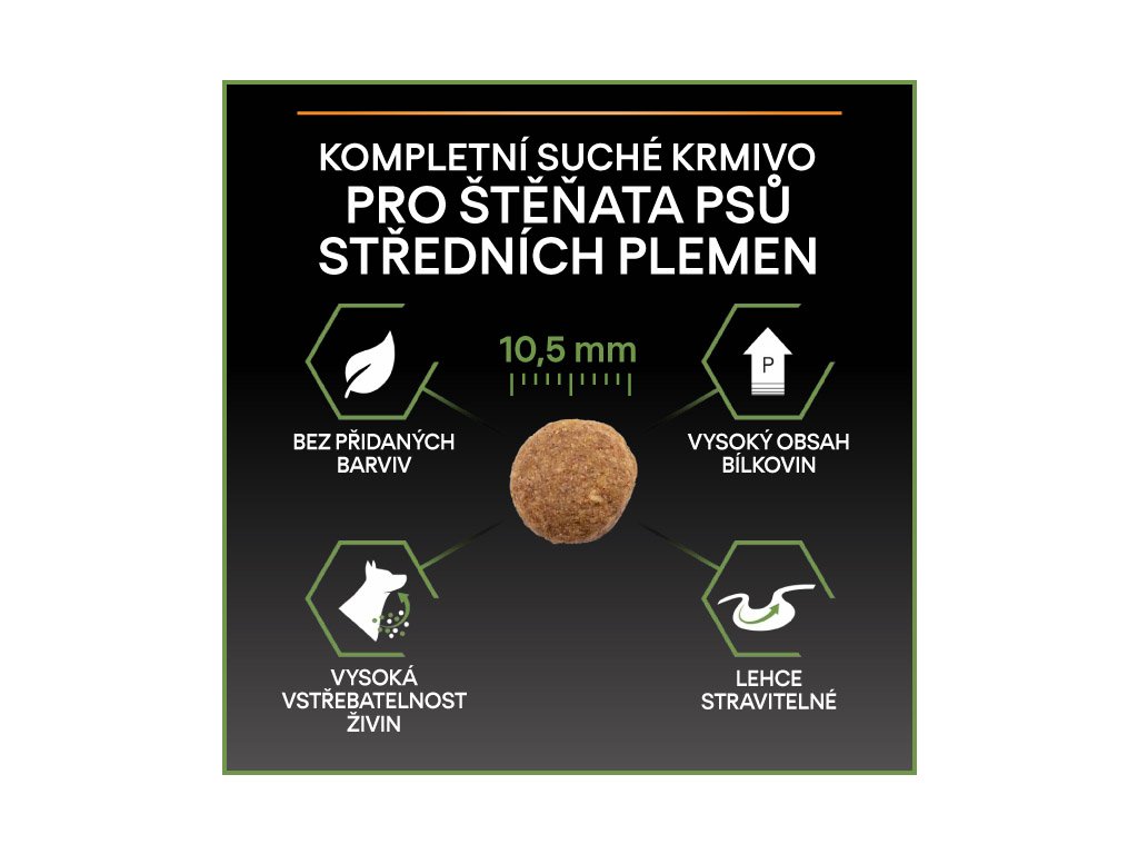 Kompletné suché krmivo pre šteňatá stredných plemien. Vhodné aj pre gravidné alebo dojčiace fenky.