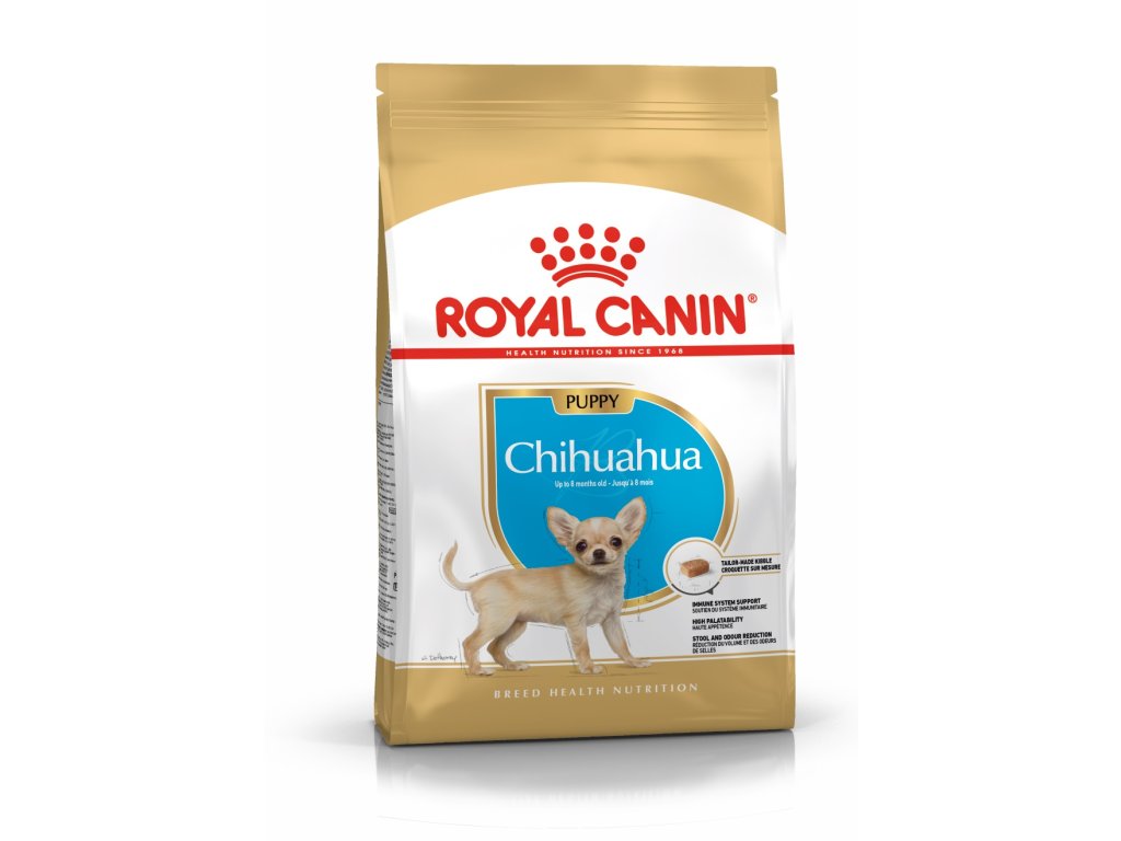 Špeciálne navrhnuté krmivo pre najmenšie psie plemeno, a to čivavu, tak, aby pokrylo jej veľký výdaj energie. Krmivo obsahuje vysoký podiel bielkovín a energie, aby čivave doplnilo množstvo energie, ktorú spáli. Receptúra pokrýva všetky nutričné potreby šteňaťa čivavy do 8. mesiaca veku. Na podporu zdravého rastu a imunitného systému obsahuje patentovaný komplex antioxidantov – vrátane vitamínu E. Exkluzívne krmivo Royal Canin Chihuahua Puppy je prispôsobené veľmi malej čeľusti čivavy, a preto sa jej dobre uchopuje a žuje. Tvar, veľkosť, štruktúra a vybrané chute granúl prispievajú k celkovej vysokej chutnosti krmiva, ktorá uspokojí aj tie najmaškrtnejšie čivavy!