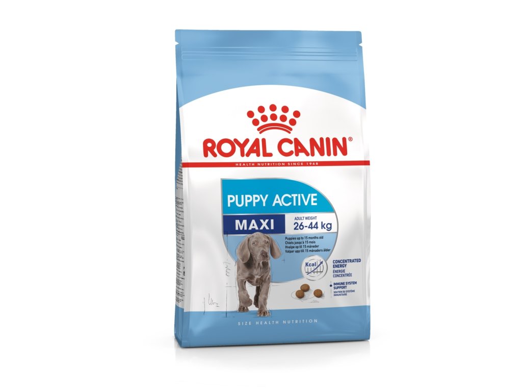 Rast je najdôležitejšou fázou v živote vášho psa. Zloženie krmiva Royal Canin Maxi Puppy Active je vytvorené tak, aby uspokojovalo všetky nutričné potreby vášho šteňaťa s vysokými energetickými nárokmi (26 až 44 kg) do 15 mesiacov. Optimálna receptúra na udržanie hmotnosti a rast šteniat s potrebou vyššieho príjmu energie.