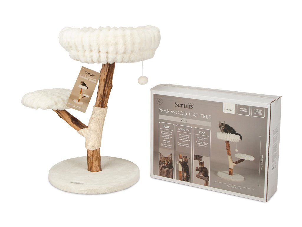 Drevený mačací strom Scruffs Atlas – luxus, prirodzenosť a dokonalé pohodlie pre každú mačku.