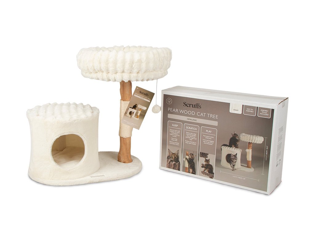 Drevený mačací strom Scruffs Himalayas – luxus, prirodzenosť a dokonalé pohodlie pre každú mačku.