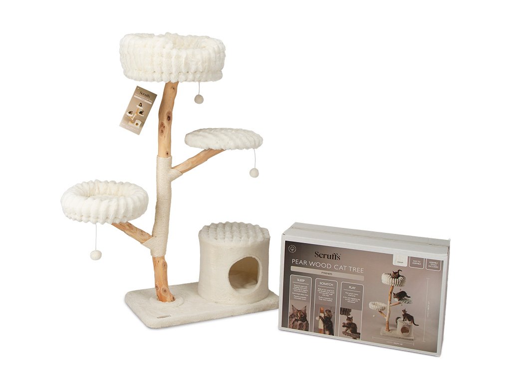 Drevený mačací strom Scruffs Pyrenees – luxus, prirodzenosť a dokonalé pohodlie pre každú mačku.