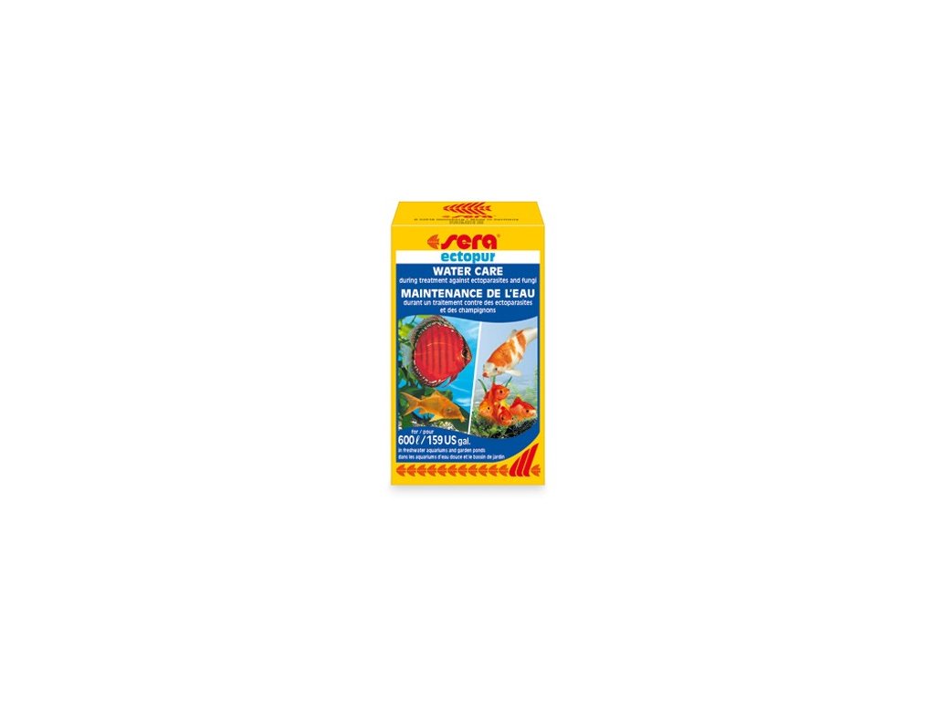 Sera Ectopur je soľný prípravok, ktorý môže významne podporiť rôzne liečebné ošetrenia (predovšetkým, napr. Zamatová choroba, plesňové infekcie, zranenia, infekcie spôsobené ektoparazitmi - jednobunkové organizmy, červy, rybie vši, parazitujúce kôrovce). Činidlo uvoľňuje dezinfikujúci kyslík, ktorý uľahčuje dýchanie chorých rýb. Navyše zvyšuje slanosť vody, čím stimuluje tvorbu kožného slizu. Takto podporuje zotavenie rybiek. Tolerancia slanosti u jednotlivých druhov rýb by mala byť vždy zistená pred použitím vysokej koncentrácie soli (napr. krátkym kúpeľom). Pridanie 5 g prípravku Sera ectopur do 50 litrov vody raz za dva týždne zníži stres a zamedzí nedostatku kyslíka.130 g na 600 litrov2,5 kg na 12 500 litrov