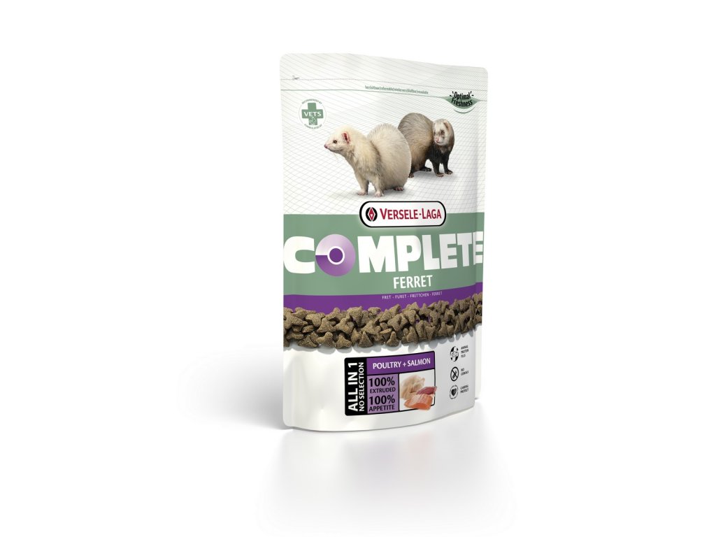 Kompletné a chutné krmivo z extrudovaných peliet pre fretky. Kompletné krmivo pre fretky.Krmivo Ferreti Complete zaisťuje tieto funkcie:* Dental Care (starostlivosť o chrup) - U fretiek sa často objavuje zubný kameň. Použitie špecifickej vlákniny v krmive Ferret Complete činí pelety tvrdšími a chrumkavejšími. V dôsledku toho sa rozlomí až v okamihu, keď do nich zuby hlboko preniknú. To spôsobuje lepšie mechanické čistenie zubov.* High Protein (vysoký obsah bielkovín) - Fretky nepatrí medzi bylinožravcov ale medzi mäsožravcov. Preto tiež majú vysoké nároky na živiny živočíšneho pôvodu. Ich strava vyžaduje vysoký obsah bielkovín (36%) a tiež tuku (19%). Všetkým týmto požiadavkám zodpovedá aj zloženie Ferret Complete.* Chicken `n` Fish (kura a ryba) - Živočíšne bielkoviny a tuky obsiahnuté v krmive Ferret Complete pochádzajú prevažne z kurčiat a rýb. Complete pre fretky obsahuje viac ako 30% kurčaťa. Kurčatá sú pre svoj vysoký obsah esenciálnych aminokyselín nutrične veľmi hodnotné a navyše sú tiež ľahko stráviteľné. Ryby sú zasa dôležitým zdrojom omega-3 mastných kyselín.* Cardial Protect - Taurín je sírnatá aminokyselina vyskytujúca sa v surovinách živočíšneho pôvodu, ktorá hrá dôležitú úlohu v správnej funkcii srdcového svalu. Z tohto dôvodu je taurín pridávaný do krmiva Ferret Complete pre fretky.* Florastimul - Pridanie prebiotík, frukto-oligosacharidov (FOS) a mannán-oligosacharidov (MOS), má pozitívny vplyv na zdravie črevnej mikroflóry. Týmto spôsobom je dosiahnutá správna rovnováha a funkcia čriev.* Vitamín Plus (vitamíny naviac) - Pridávanie dôležitých vitamínov do krmiva podporuje celkové zdravie. Vitamín A je nevyhnutný pre obnovu kožných buniek, zrak, reprodukciu a metabolizmus. Vitamín D3 stimuluje ukladanie vápnika / fosforu a tým podporuje kosti. Vitamíny E a C sú dôležité antioxidanty, ktoré chránia telo pred voľnými radikálmi. Obaja tiež posilňujú prirodzenú obranyschopnosť organizmu. V krmivách Complete je používaná stabilizovaná forma vitamínu C. Na rozdiel od kryštalickej formy podlieha stabilizovaný vitamín C oveľa pomalšie oxidácii a biologickému rozkladu a preto zostáva ďaleko dlhšie aktívny.* Pre Immunity (lepšia imunita) - Pridanie prírodných rastlinných farbív, luteínu a ß-karoténu, má pozitívny vplyv na celkovú obranyschopnosť a kondíciu. Tieto karotenoidy sú známe ako vysoko účinné biologické antioxidanty. Naviac však stimulujú tvorbu protilátok proti chorobám, čím posilňujú prirodzenú obranyschopnosť organizmu.* Optimal Coat (optimálna srsť) - Omega-3 a omega-6 mastné kyseliny v krmivách radu Complete podporujú zdravšiu kožu a lesklejšiu srsť. Omega-3 mastné kyseliny sú obsiahnuté vďaka pridanému ľanu, omega-6 vďaka pridaným rastlinným olejom. Takto je dosiahnuté optimálneho pomeru omega-3 / omega-6 mastných kyselín.* Anti Hairball (proti bezoárom) - Vďaka použitie špecifickej prírodnej vlákniny je znížené riziko vzniku chlpových zmotkov v žalúdku a v tráviacom systéme na minimum.* Odour Control (kontrola pachu) - Všetky krmivá radu Complete obsahujú extrakt z juky. Ten viaže amoniak a ďalšie zložky zodpovedné za pachy vychádzajúci z výkalov. Nepríjemné pachy sú tak výrazne redukované.Kŕmny návod: v závislosti na veľkosti a veku fretky odporúčame podávať denne 50 až 80 g.Zloženie: kuracie mäso (30%), ryža, pšenica, kukurica, kukuričný lepok, kurací tuk, repná vláknina, dehydrované ryby, hydrolyzovaná kurací proteín, celé sušené vajcia, pivovarské kvasnice, rybí tuk, minerálne látky, FOS, výťažok z juky, extrakt z nechtíka.Akostné znaky: proteíny 36%, tuky 19%, vláknina 3%, popoloviny 6,5%, vápnik 1%, fosfor 0,9%, horčík 0,09%, vitamín A 25000 mj / kg, vitamín D3 2000 IU / kg , vitamín E 150 mg / kg, vitamín C 50 mg / kg, meď ako síran meďnatý 20 mg / kg, taurín 2000 mg / kg, beta-karotén 10 mg / kg